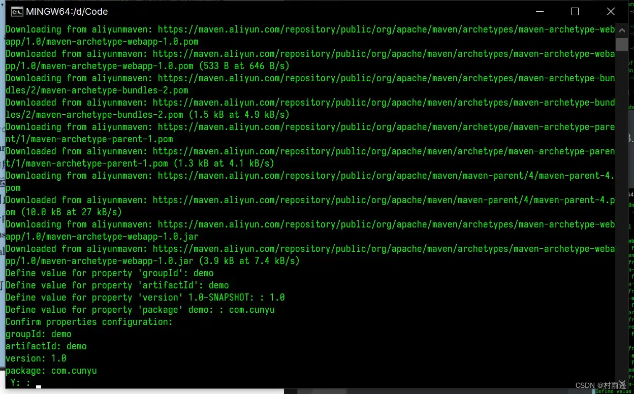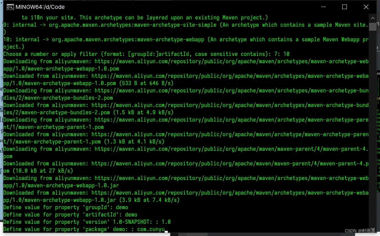 - 首先进入你要创建项目骨架的目录,然后执行如下命令: