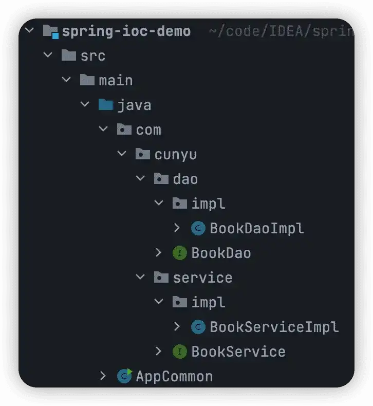<bean id="bookDao" class="com.cunyu.dao.impl.BookDaoImpl"/>