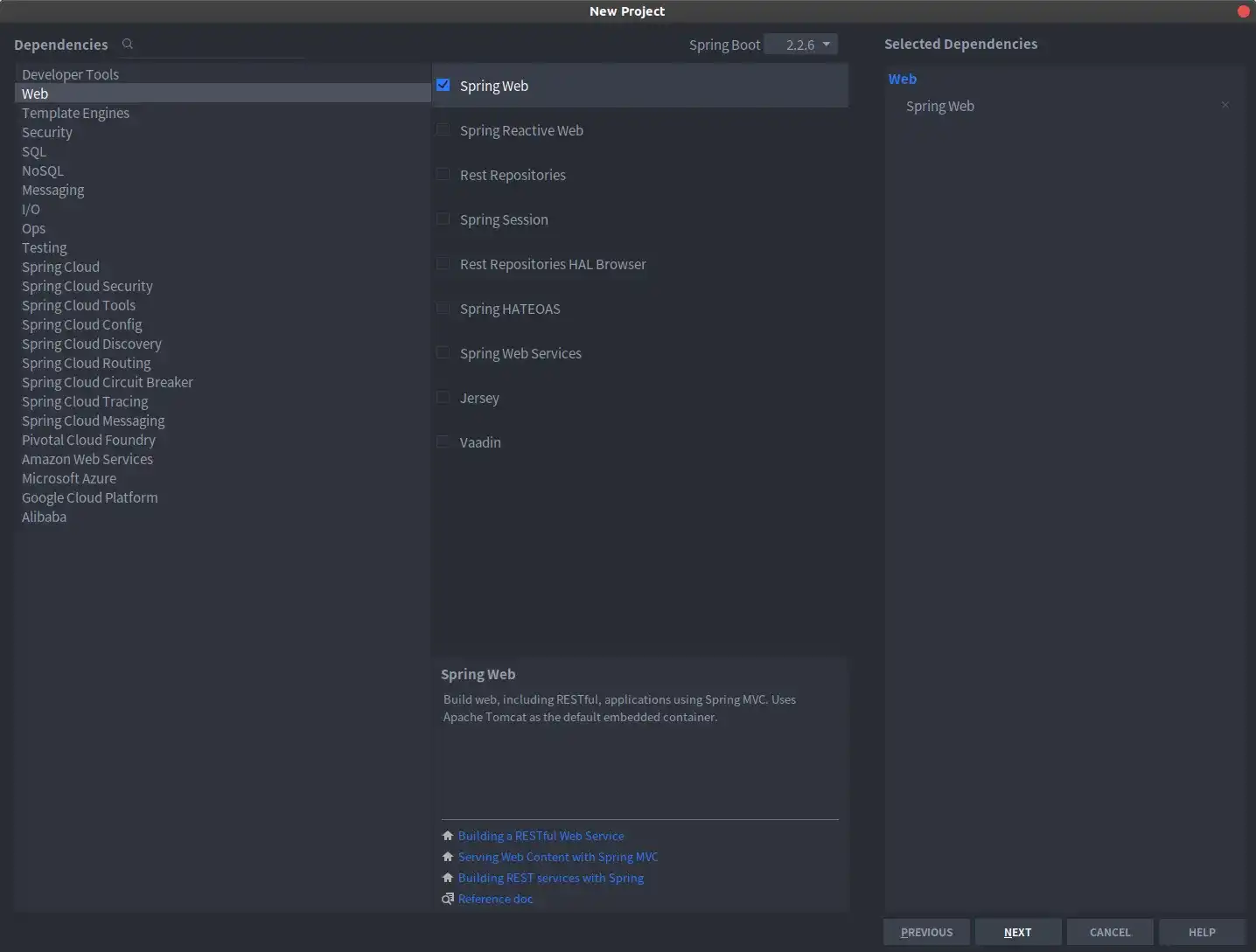 项目具体依赖,默认包含 spring-boot-starter-web,用于实现HTTP接口(该依赖中包含了Spring MVC);spring-boot-starter-test用于编写单元测试的依赖包。后续开发中,主要就是在这里添加各种依赖。