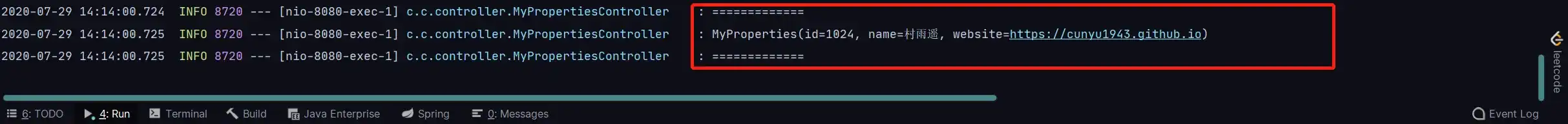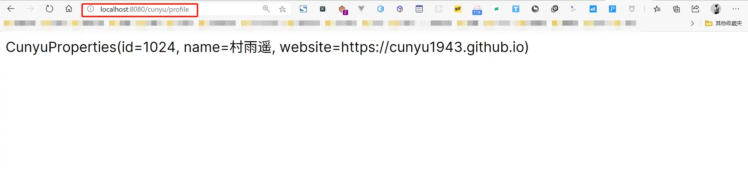 cunyu.website=https://cunyu1943.github.io- 创建实体类来映射我们配置的属性;