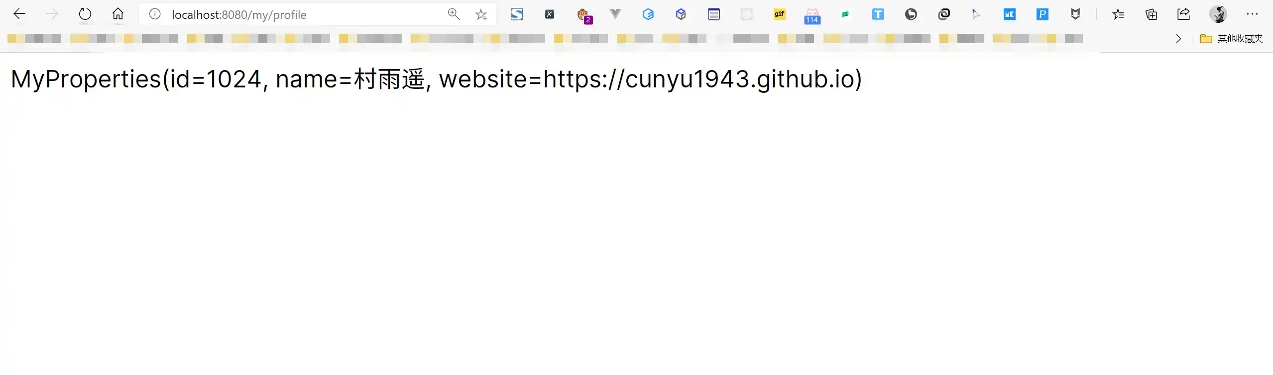 http://localhost:8080/my/profile,同时观察控制台,显示如下内容则说明属性注入成功;