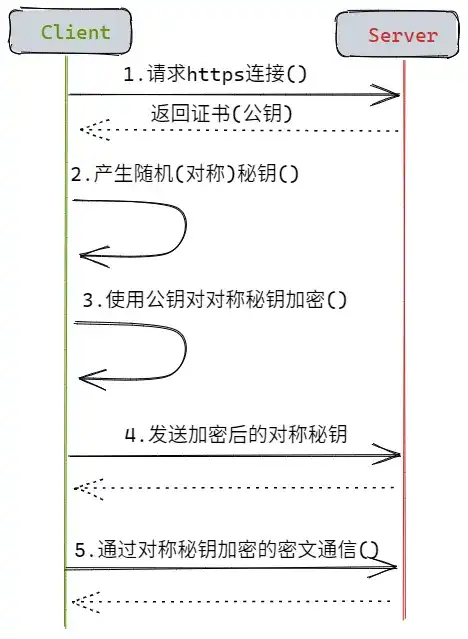- 客户端的浏览器根据双方同意的安全等级,建立会话秘钥,然后利用网站的公钥将会话秘钥加密,并传送给网站;