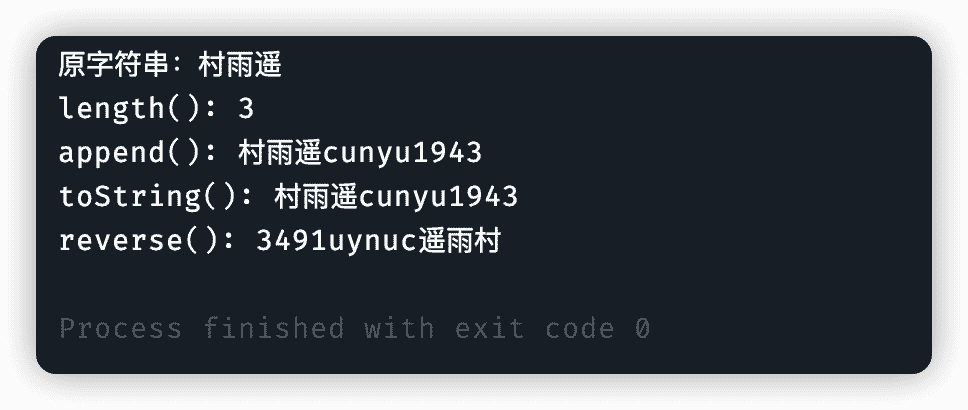 System.out.println("原字符串:" + stringBuilder);