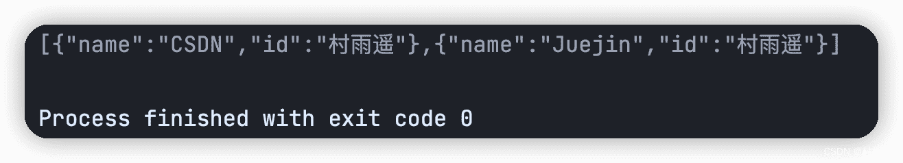 String platform = "[{"name":"CSDN","id":"村雨遥"},{"name":"Juejin","id":"村雨遥"}]";