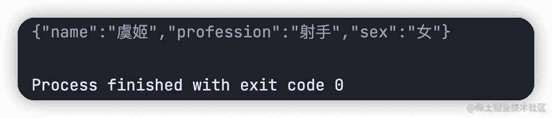 在我们的主类中创建一个 Hero 对象,然后利用 toJSONString() 方法将其转换为 JSON 字符串,可以看到结果正确转换了。