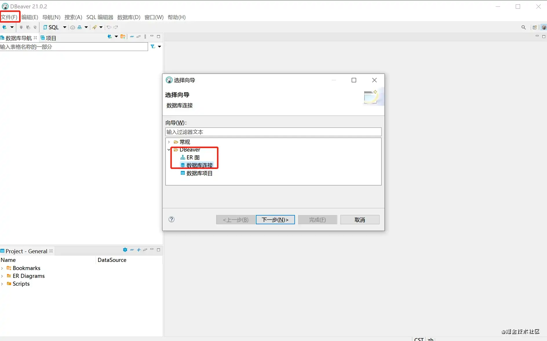 文件 -> 新建 -> DBeaver -> 数据库连接