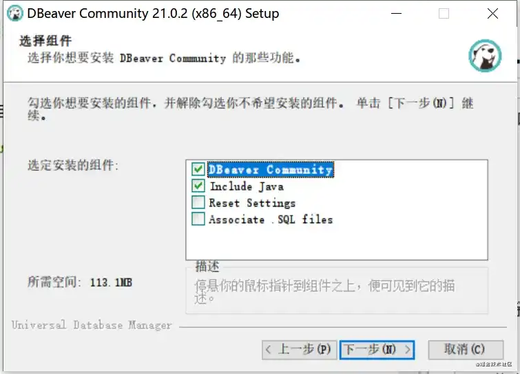 - 选择组件,一般默认即可,继续下一步;