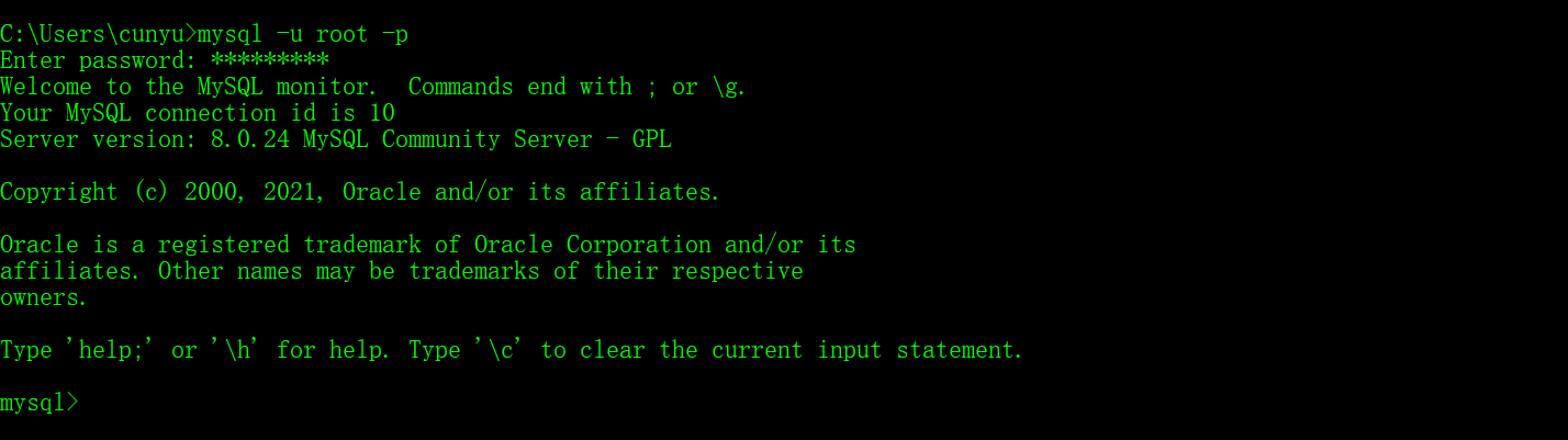 - mysql -u 用户名 -p