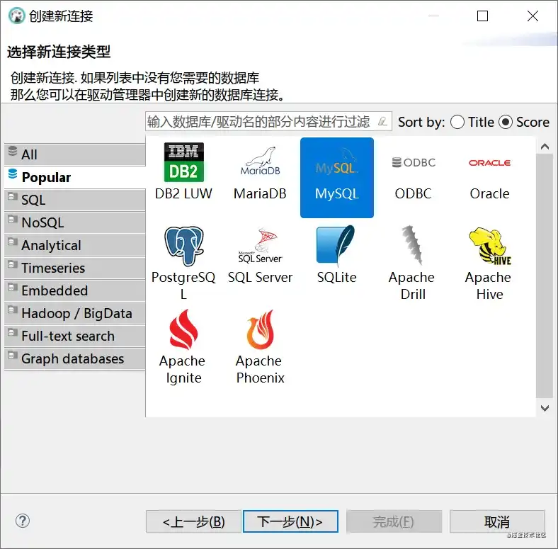 - 选择对应数据库软件,我们这里以 MySQL 为例,然后选择下一步;
