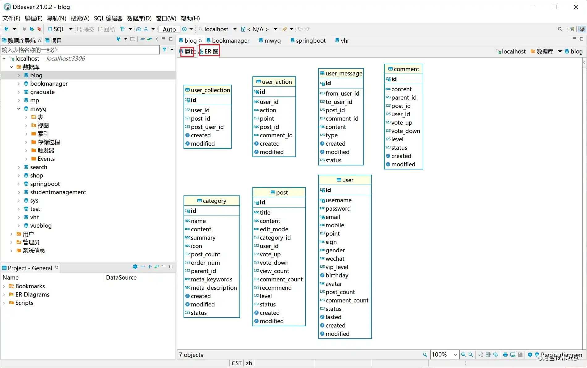 可以看到 DBeaver 不仅仅支持查看数据库的相关属性,还能看到数据库的 ER 图,可以说是十分方便了;