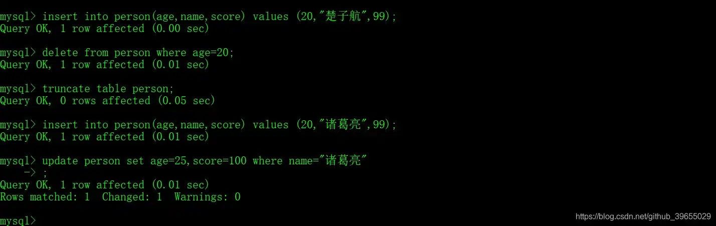 用于 对数据库中表的数据进行增删改,相关关键字:INSERT