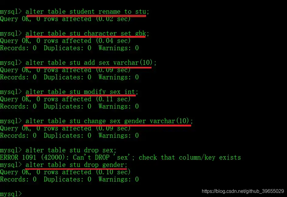 - 修改列名称以及对应的数据类型