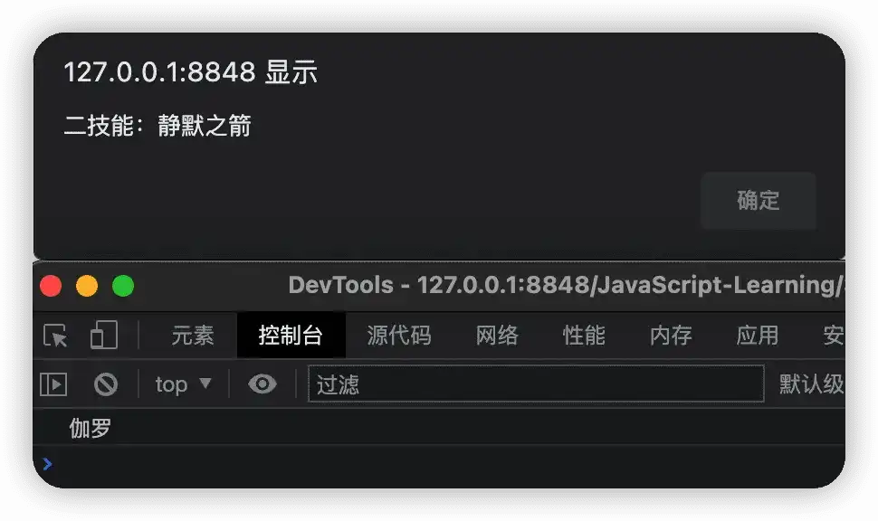 alert('二技能:静默之箭');