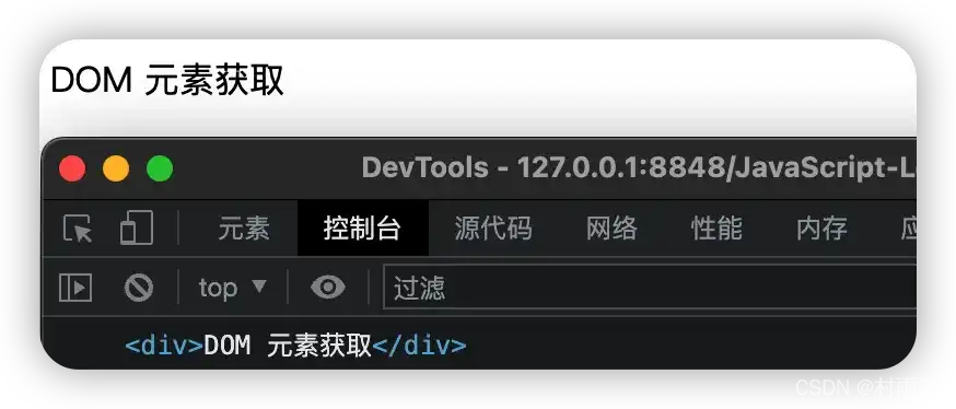 可以看到原本 button 标签的属性 innerText 从原先的点击变成了 村雨遥,说明通过修改 JavaScript 对象属性从而改变 HTML 中标签属性的目的达到了。