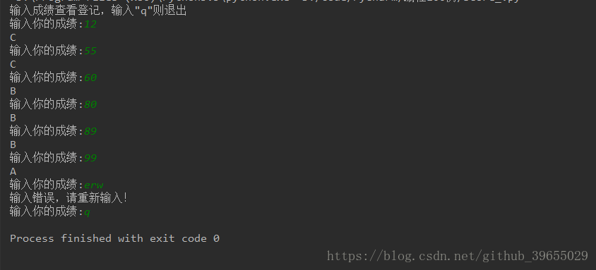 输入成绩,判断是否为数字,是数字则判定属于哪个等级,若不是数字怎根据代码设定返回重新输入成绩或者直接退出程序;