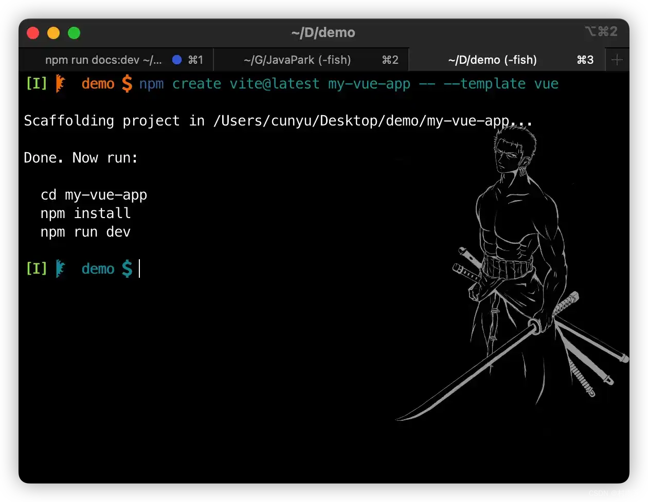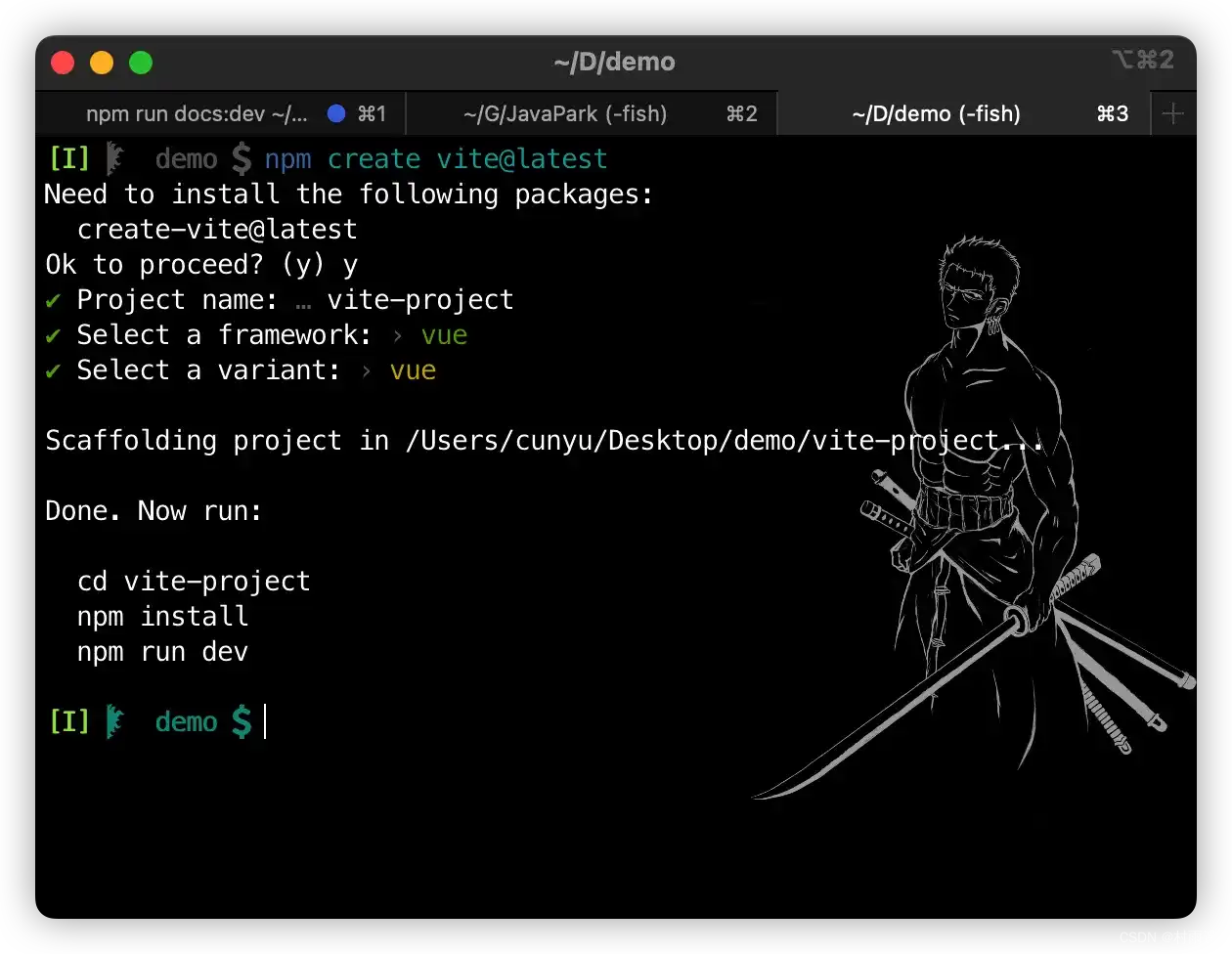 初始工作做好之后,我们就可以开始搭建我们的第一个 Vite 项目了。