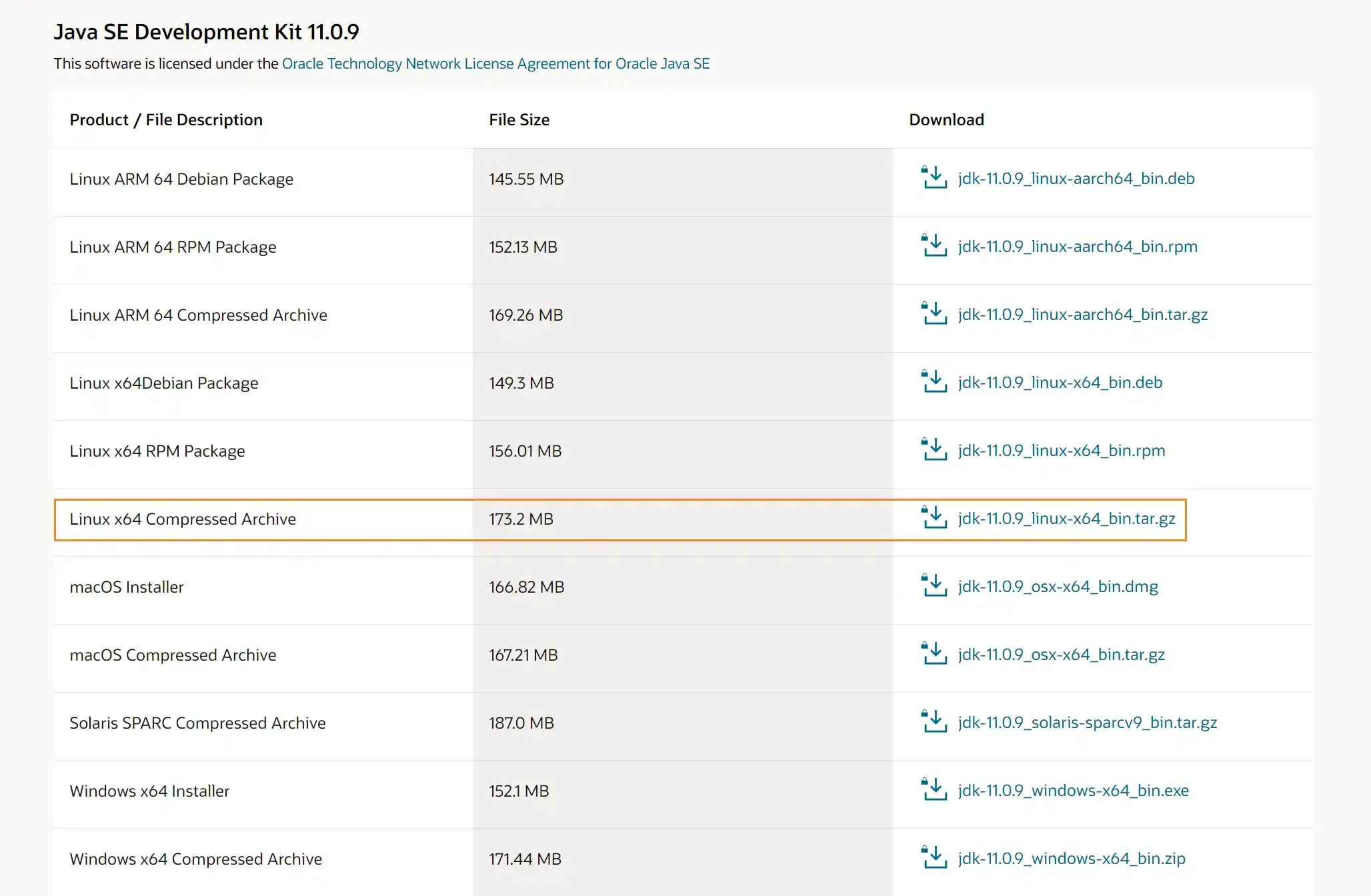 - 首先去 官网 下载 JDK,选择自己想要的版本即可,一般推荐 JDK 1.8+ 的版本;