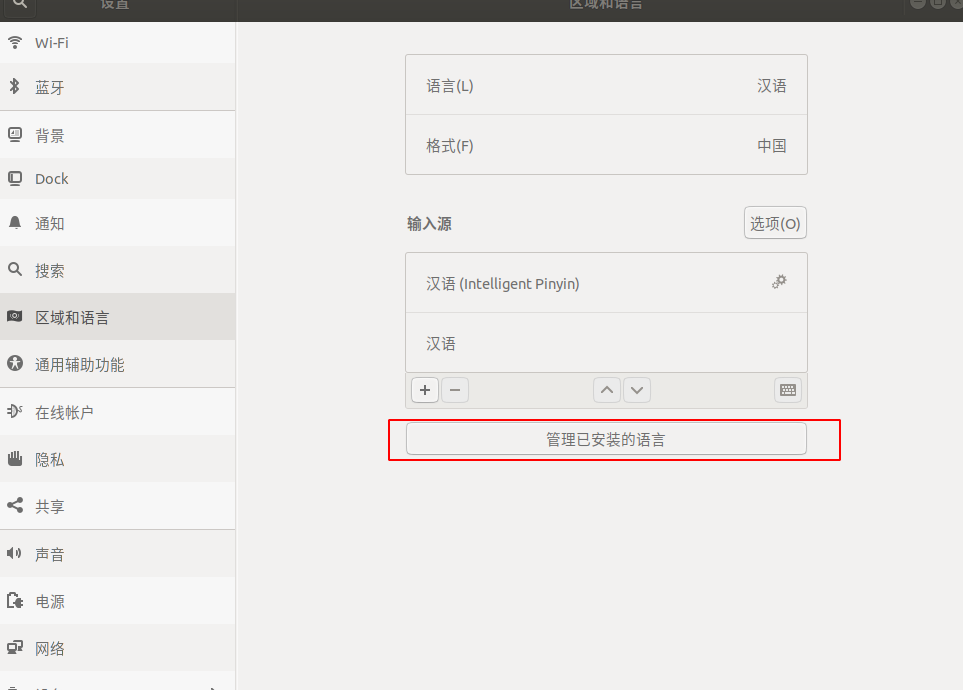接着到 设置 - > 区域和语言 点击已安装的语言;