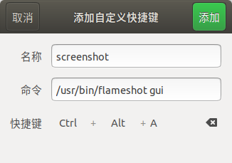 依次进入 设置 -> 设备 -> 键盘 ,然后滑到最底端会有一个 + 按钮,点击 + 添加自定义快捷键,并设置名称和命令,然后点击右上角添加就可以设置自己想要的截图快捷键,比如我设置的是 Ctrl + Alt + A,如下图所示;
