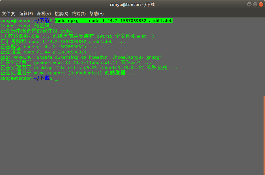 去官网 下载 对应安装包,然后在终端使用如下命令安装;