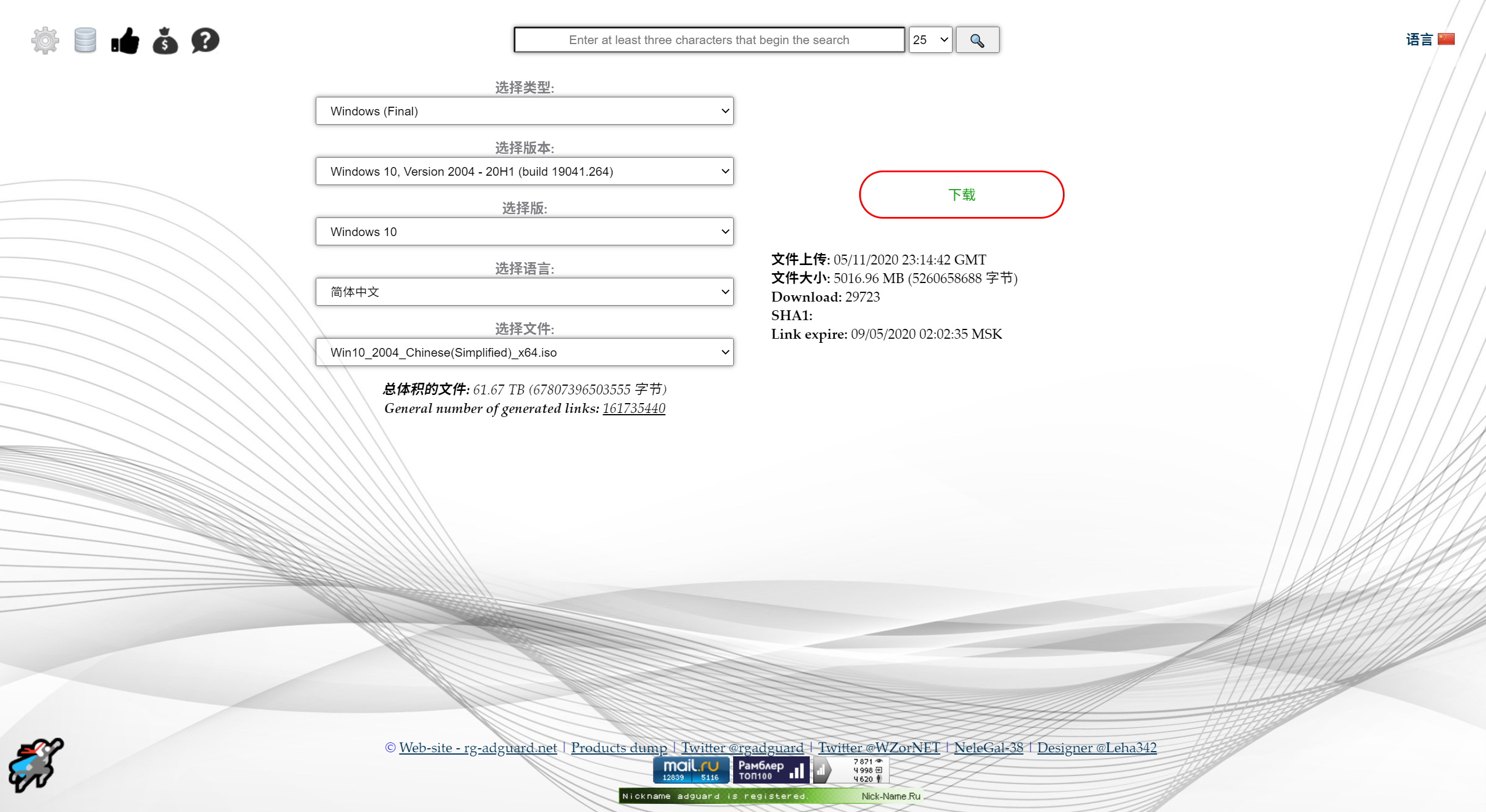 如上图,如果你不想通过种子的方式进行下载,那这个方式一定适合你。它无需通过其他下载工具进行下载,只需要选中系统类型、版本、版、语言以及文件后,右侧就会出现一个下载按钮,然后点击下载按钮就会进行下载,十分方便,如下图中我以 Windows 10 2004 版简体中文的 64 位系统,选中后点击下载进行下载即可。