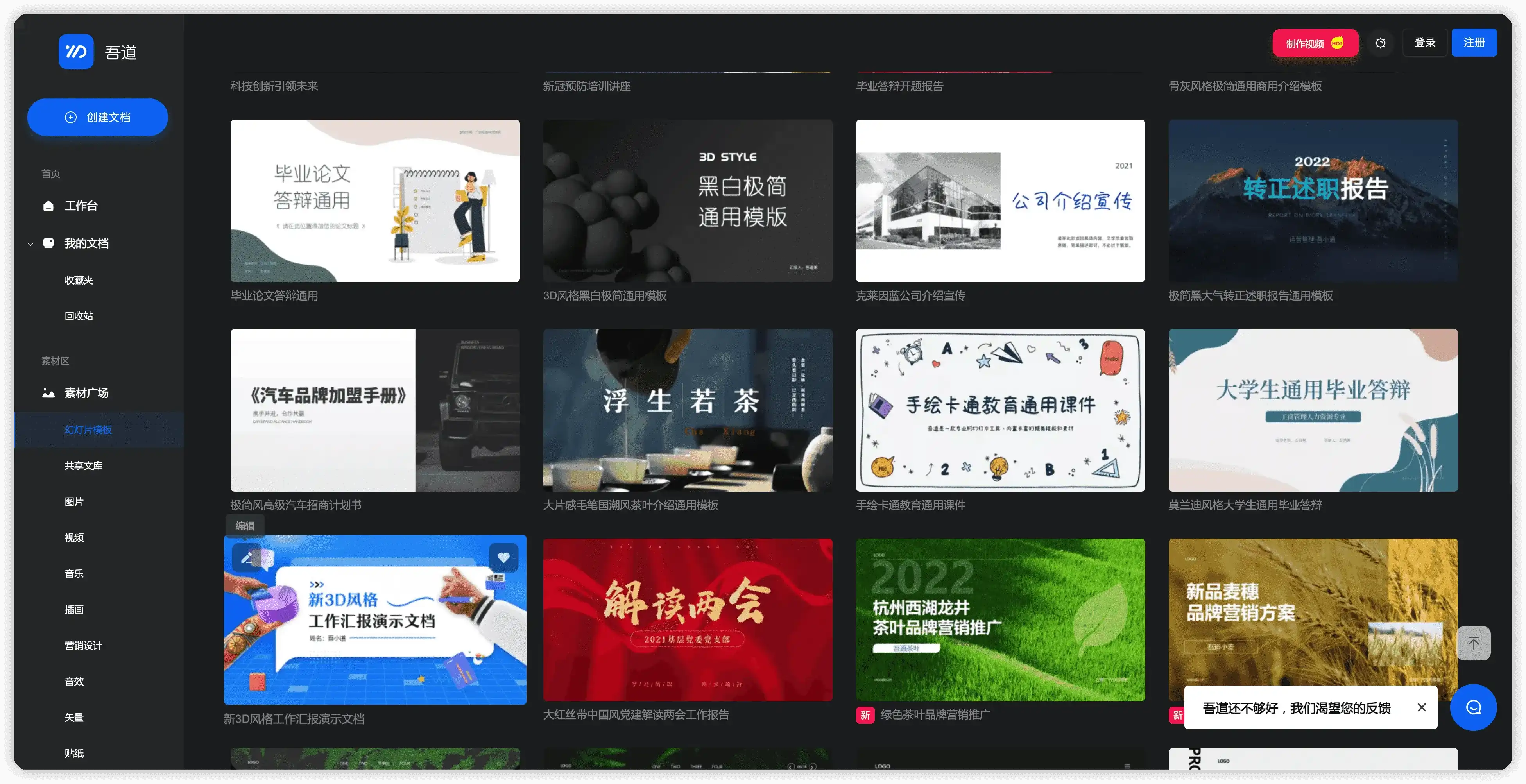 提供免版权的幻灯片模板,素材广场中还有其他共享文库、图片、视频、音乐、茶花园、营销设计、音效、矢量、贴纸等素材等你来下载!