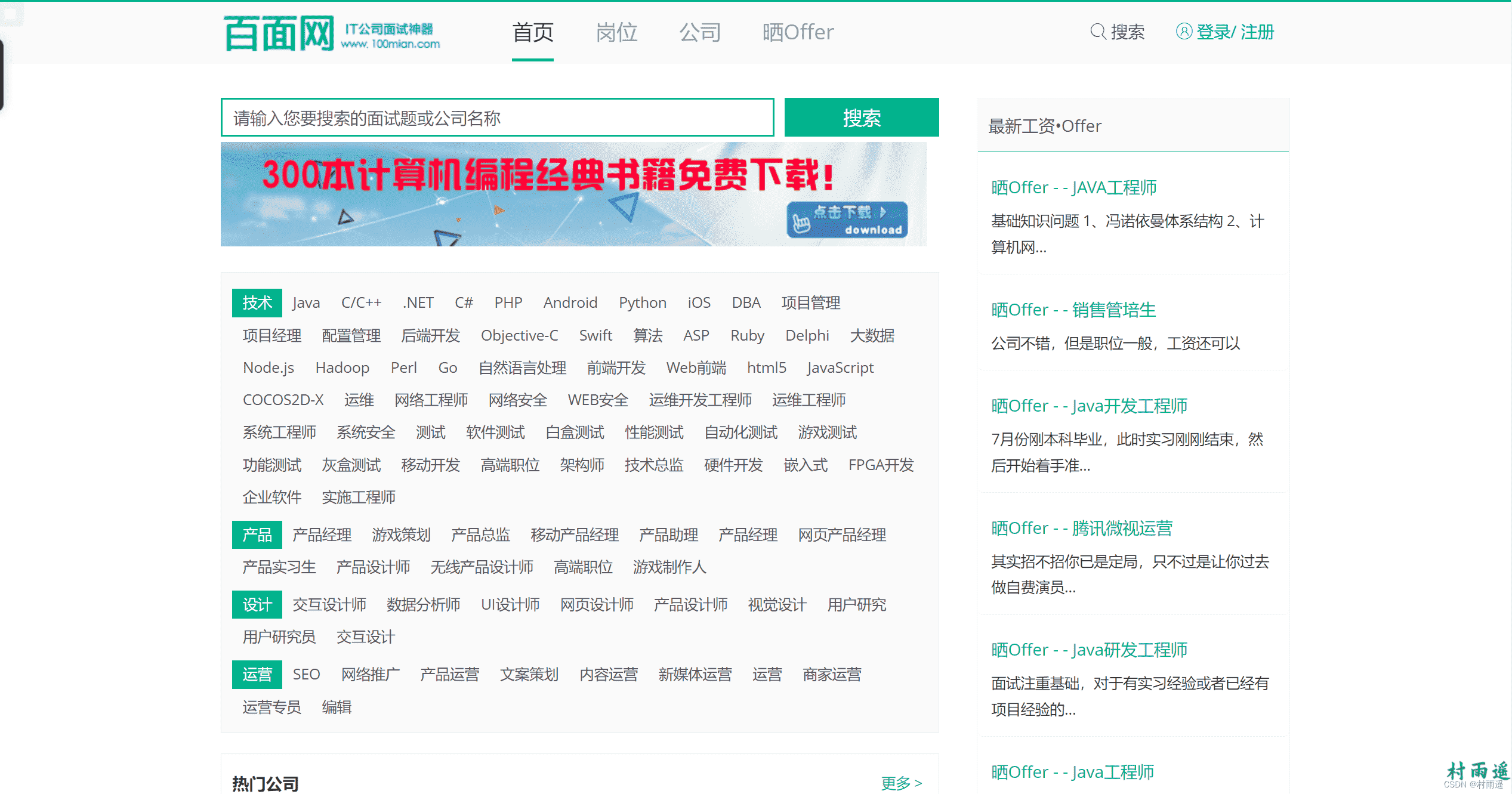 IT 公司面试神器,这里不仅提供了 300 本计算机编程经典书籍免费下载,还有针对互联网各个岗位的面试题,如果你也刚好需要找工作,不妨来这里看看经验和面试题。