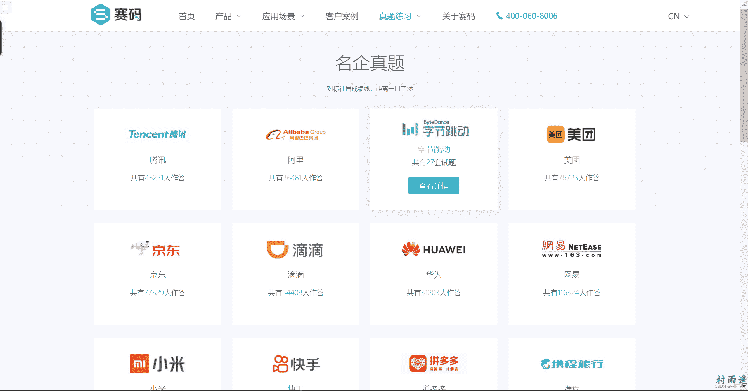 一个免费在线考试系统、在线面试系统,稳定专业且易用。里边汇聚了腾讯、阿里、字节跳动、百度、京东、小米、华为等一线互联网的真题,如果你参加过校招,那么你肯定不会陌生这个网站,因为会有好多公司都会选择在这里进行笔试。