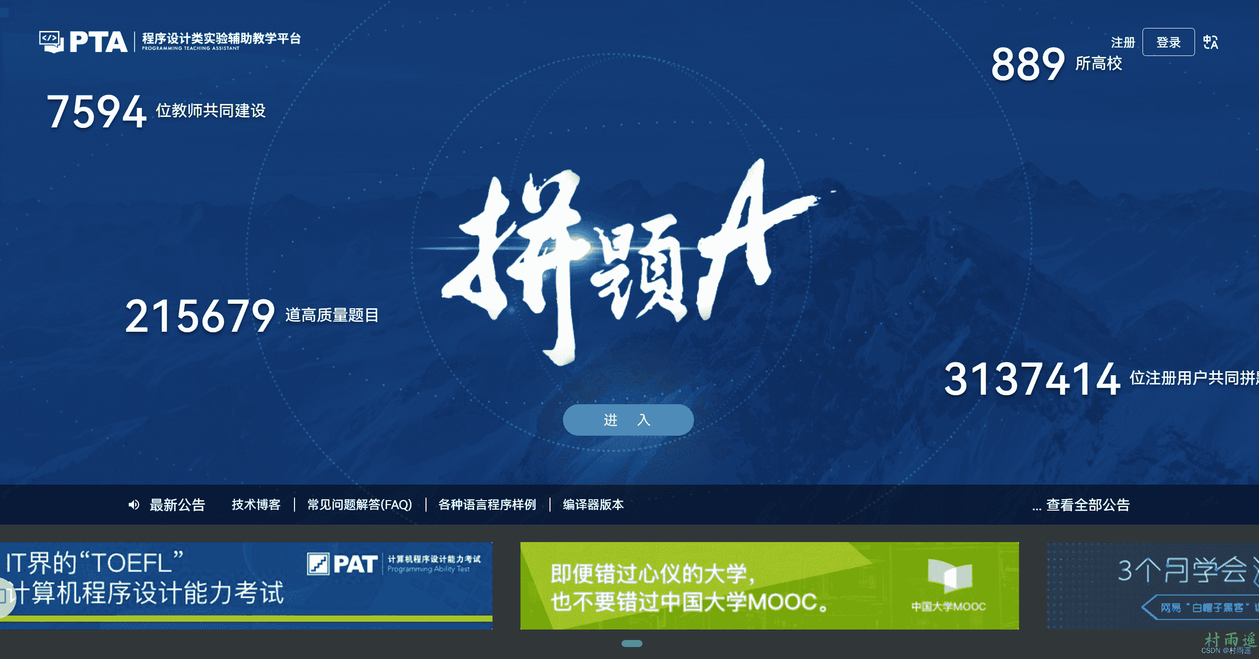 程序设计类实验辅助教学平台,由 7594 位来自 889 高校老师共同创建,囊括了 215679 道高质量题目,而且截止本文写作时已有 3137414 位注册用户。不过里边主要是针对 C、C++ 语言来进行答题,关于更多语言答题,还在进一步扩展中。 如果你在学习 C/C++ 语言,那么不妨进入他们,和各个高校的学子一起在线拼题吧。