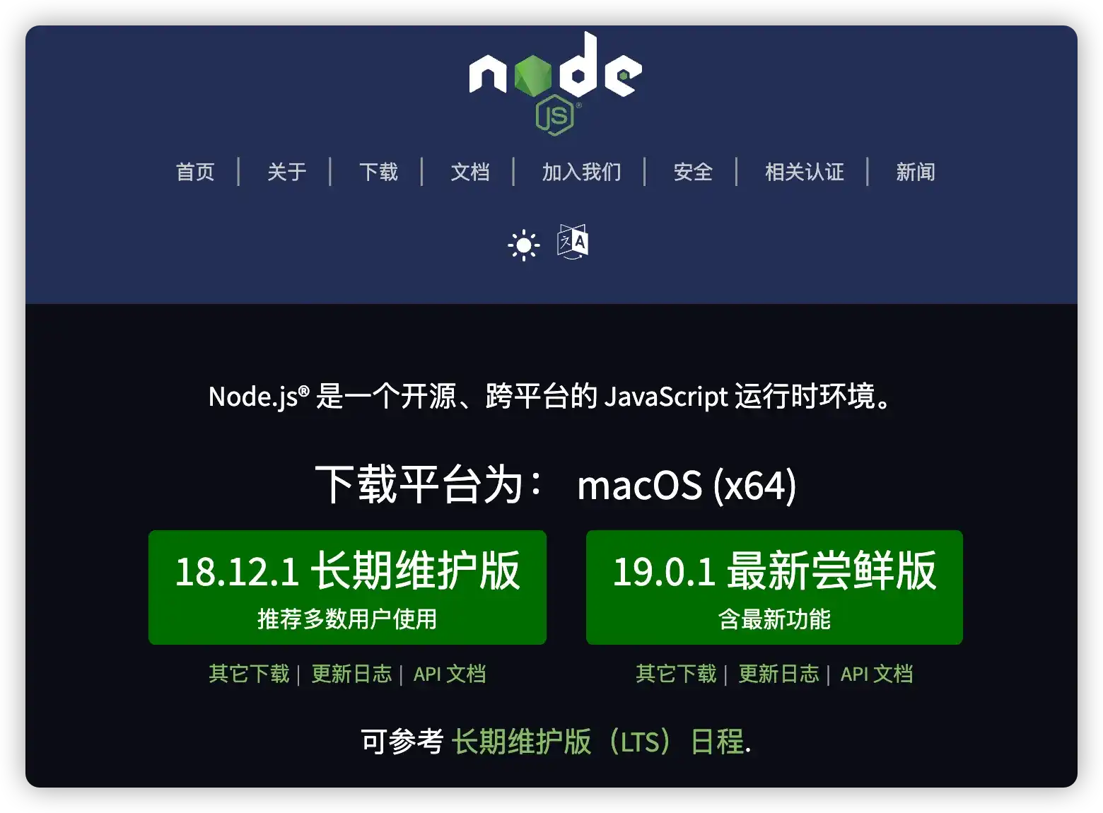 其中 LTS 表示长期维护版本,也更加推荐安装这个版本。