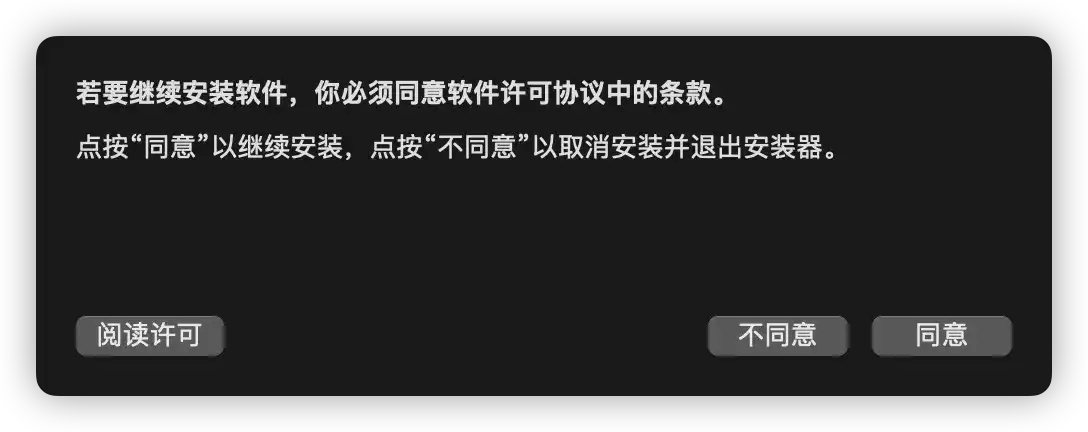 2. 点击继续,会提示软件的相关许可协议。