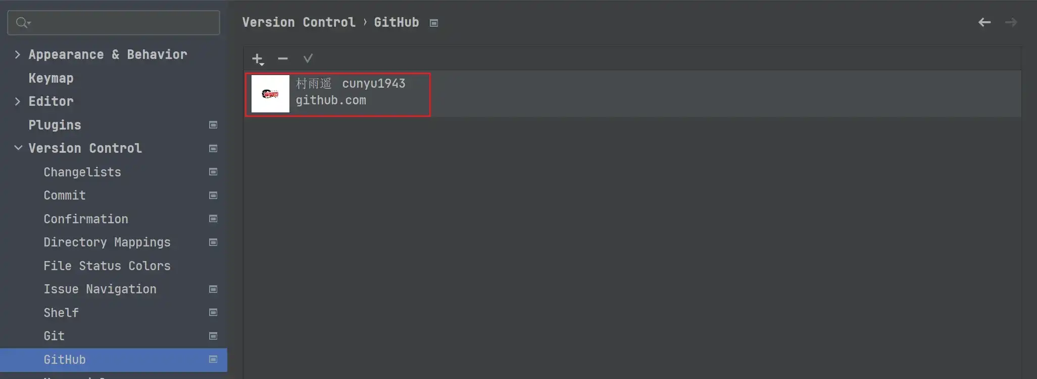 登陆成功后,则会出现我们 Github 账号的相关信息,如下图。