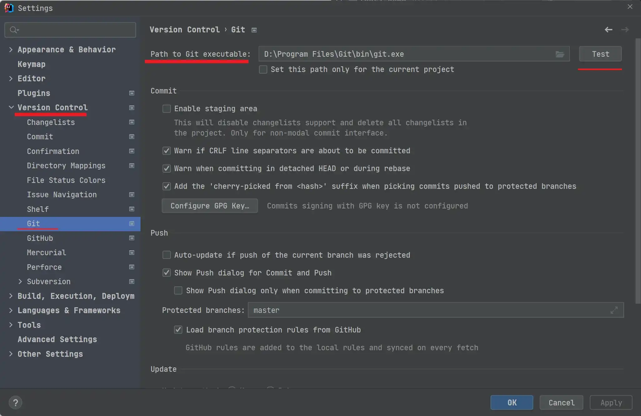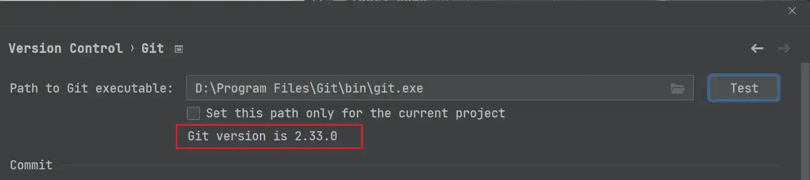 设置完成之后,点击右方的 Test,如果 Git 安装成功且路径正确,就会弹出如下的提示信息,说明我们的配置也就成功了。