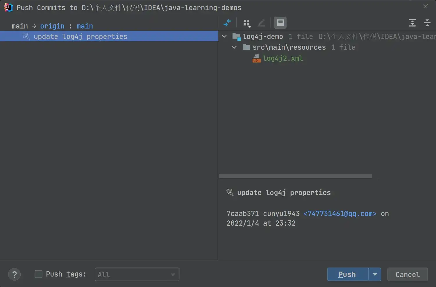 提交代码后,只是将代码提交到了本地缓冲区,要真正提交到远程代码仓库中,还需要我们进行推送,这里同样有多种方式进行推送。