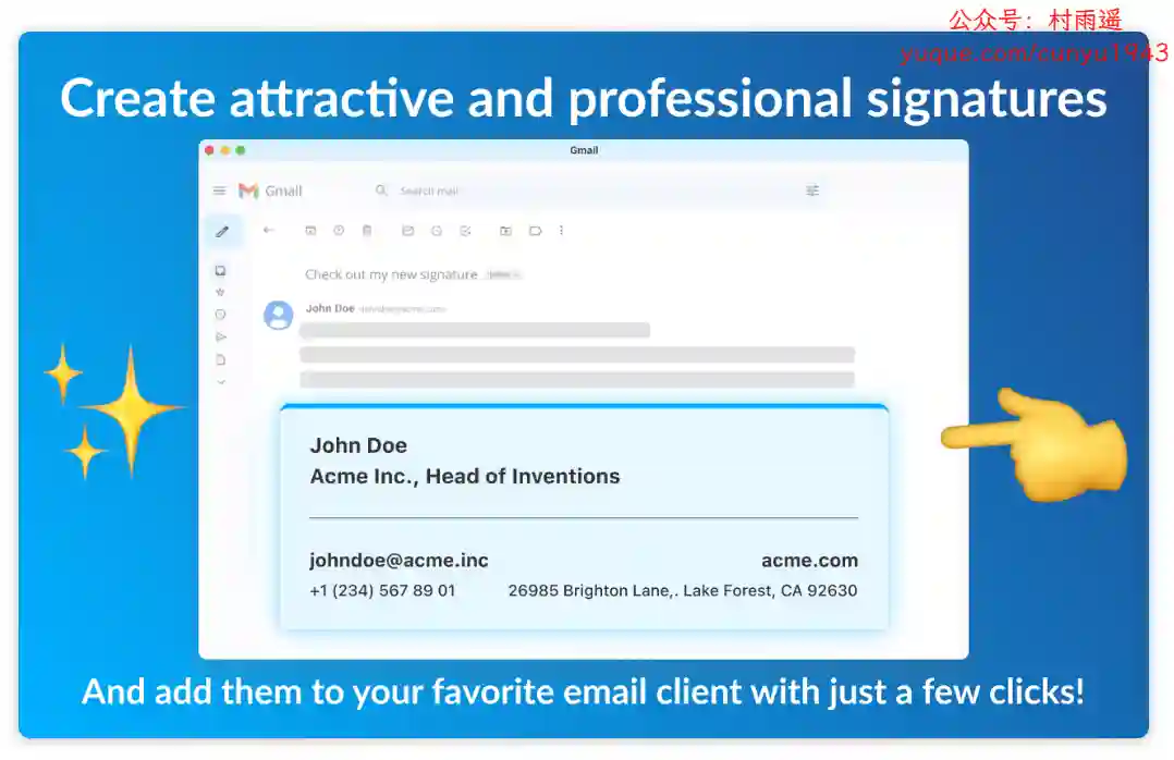 创建个性化和专业的电子邮件页脚的完美工具,它能充分展示您的身份并在您发送的每封邮件中留下深刻的印象。凭借用户友好的界面和一系列可定制的功能,提升您的邮件沟通体验。