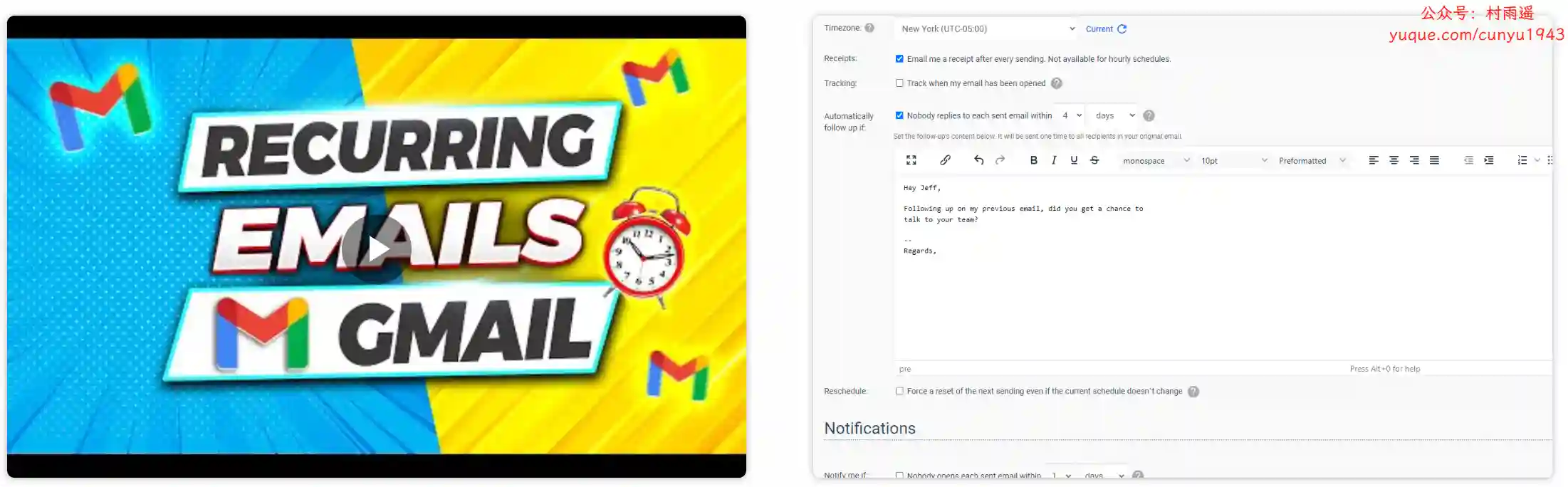一款注重隐私的 Chrome 扩展,允许您通过 Gmail 延迟发送您的邮件,一次或每 X 个小时/天/月/年重复发送。无追踪、无广告、无横幅和无臃肿软件。