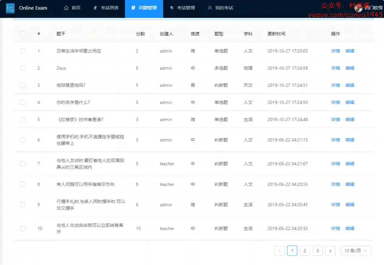 基于 Spring Boot 的在线考试系统,前后端分离,前段组件化,方便二次开发。支持如下功能: