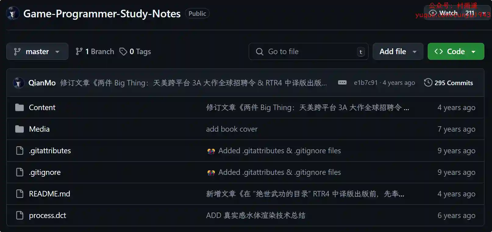 作者作为游戏程序员生涯的读书笔记合辑,涉及游戏开发中的图形学、实时渲染、编程实践、GPU 编程、设计模式、软件工程等内容。
