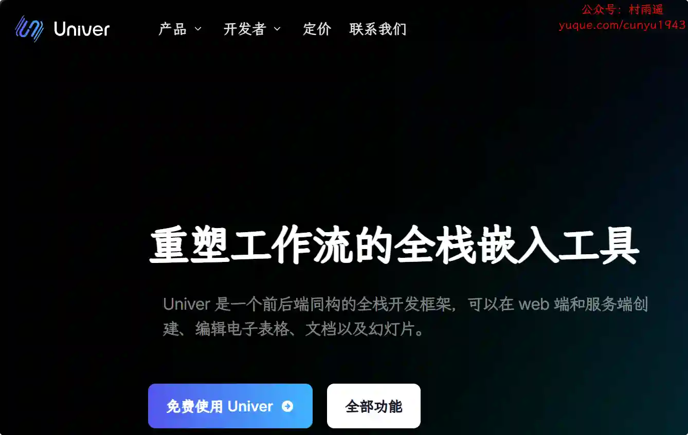 一个前后端同构的全栈开发框架,可以在 web 端和服务端创建、编辑电子表格、文档以及幻灯片。