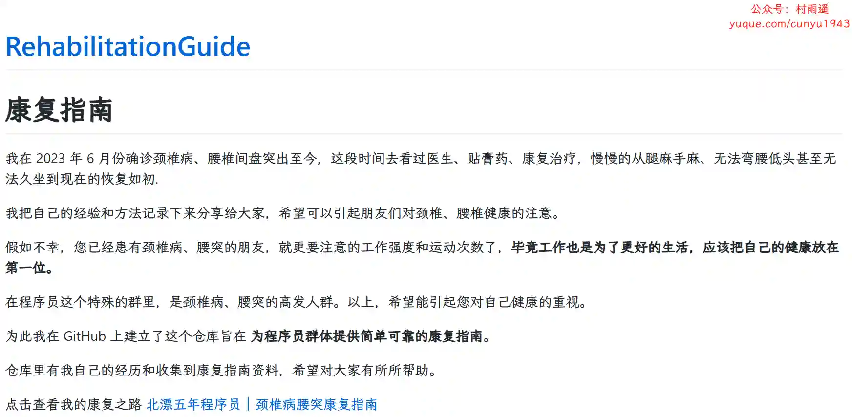 颈椎病腰突康复指南,为程序员群体提供简单可靠的康复指南,希望以此能唤醒大家对颈椎、腰椎健康的注意。