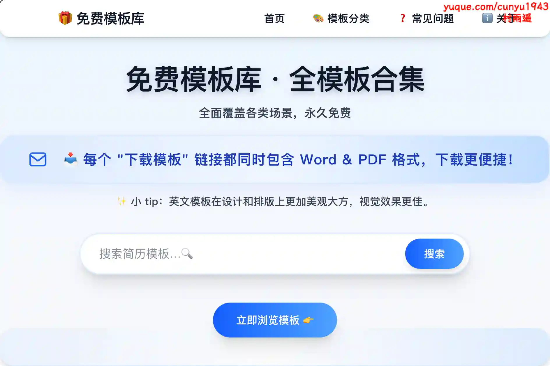 高质量模板免费下载,涵盖各行业、岗位、风格,支持分类、搜索、预览、下载。