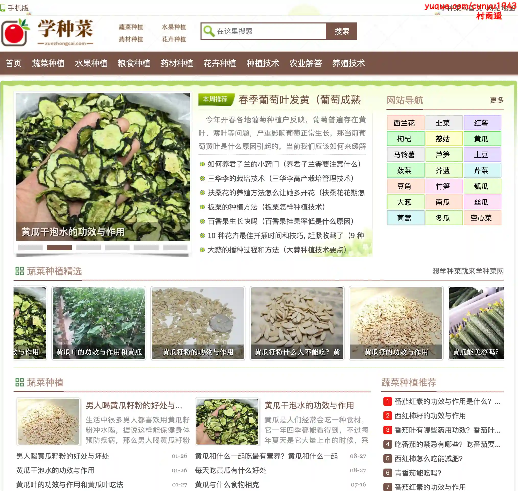一个种植养殖网站,主要提供蔬菜种植、粮食种植、水果种植、中药材种植及花卉养殖技术文章。