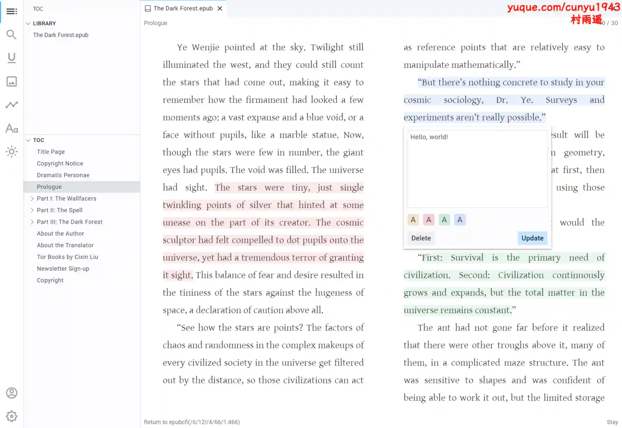 一款免费在线 EPUB 阅读器,支持所有平台(Web, Windows, Linux, macOS, Android, iOS)。同时支持阅读多本书籍,在不同设备间无缝阅读。