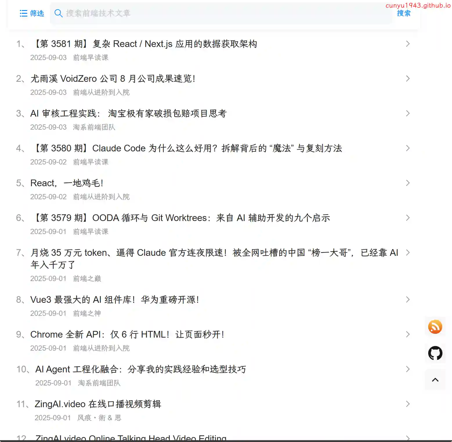 根据 RSS 订阅最新前端技术文章并自动分类,每天定时更新前端技术文章,并推送到 GitHub 方便查看。