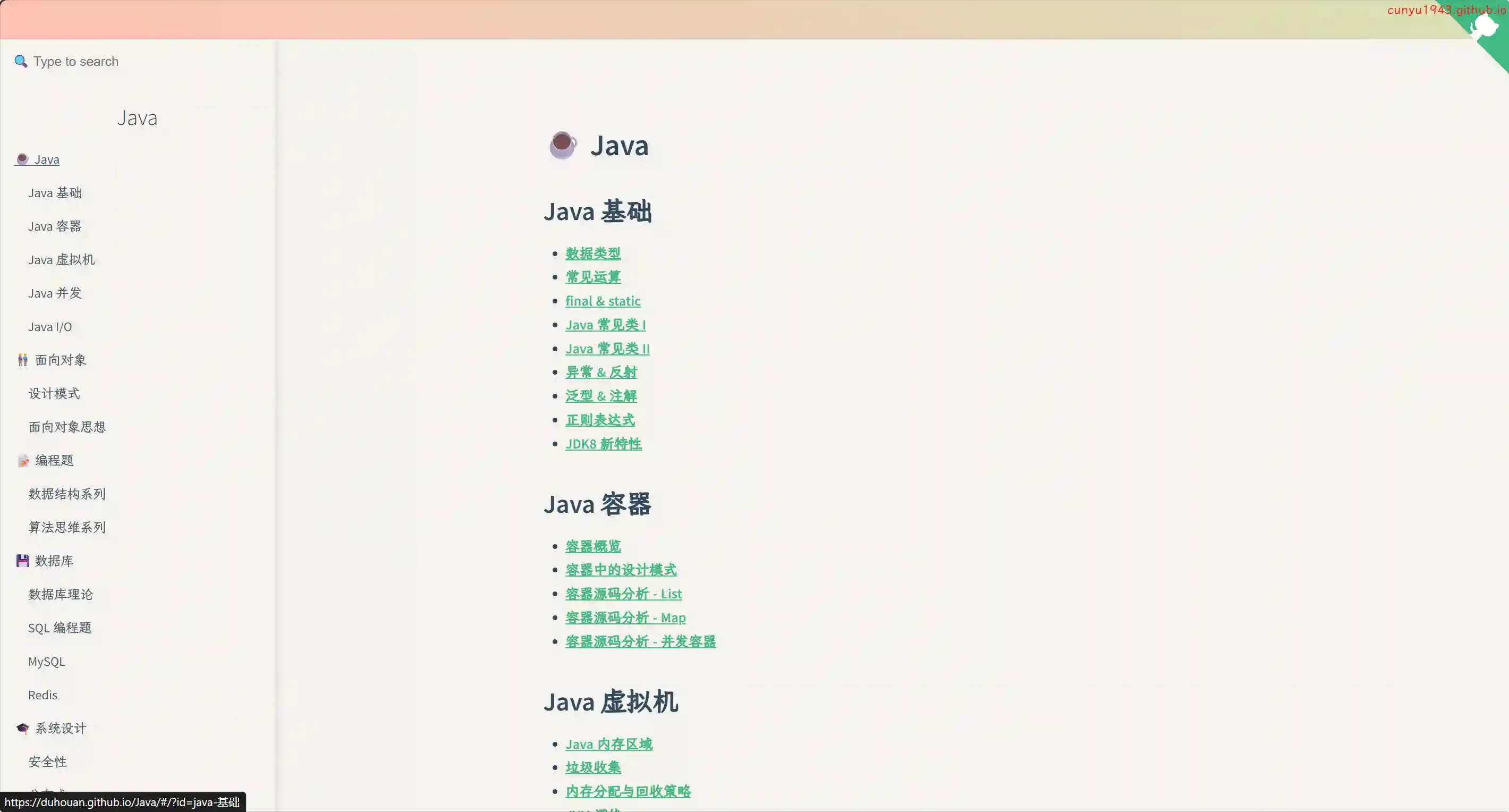 本仓库是对 Java 的一些基础知识、数据库知识、以及框架知识进行收集、整理。