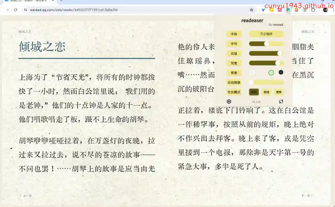 美化微信读书网页版,支持双栏模式、PDF 阅读。参考微信读书移动端主题,四种颜色主题可切换,而且支持自动阅读。
