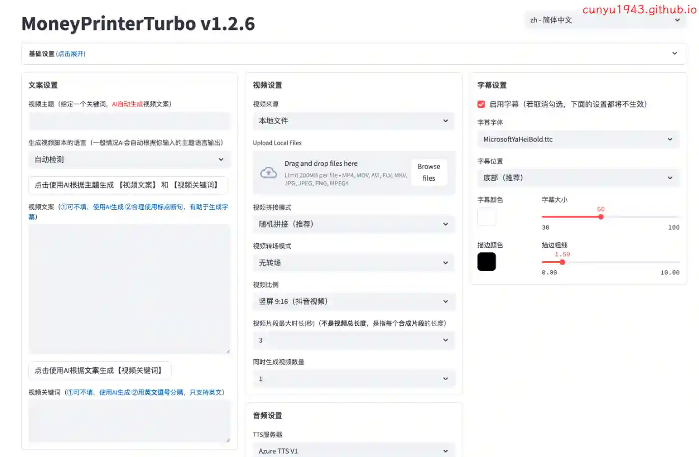 只需提供一个视频主题或关键词 ,就可以全自动生成视频文案、视频素材、视频字幕、视频背景音乐,然后合成一个高清的短视频。