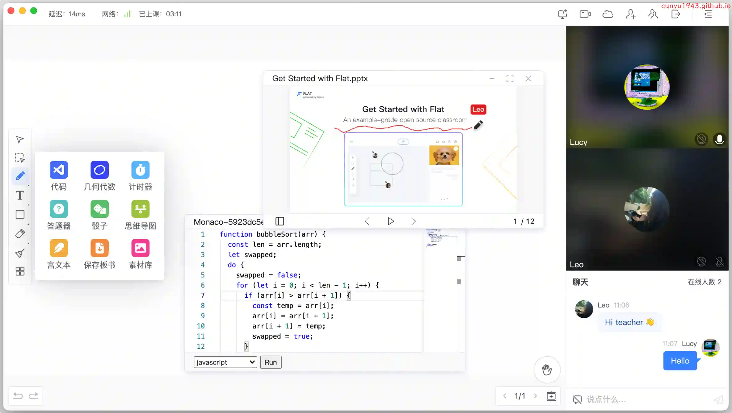 个人老师可直接使用的在线授课软件,开箱即用。前后端完全开源,快速搭建简约美观的在线教室。