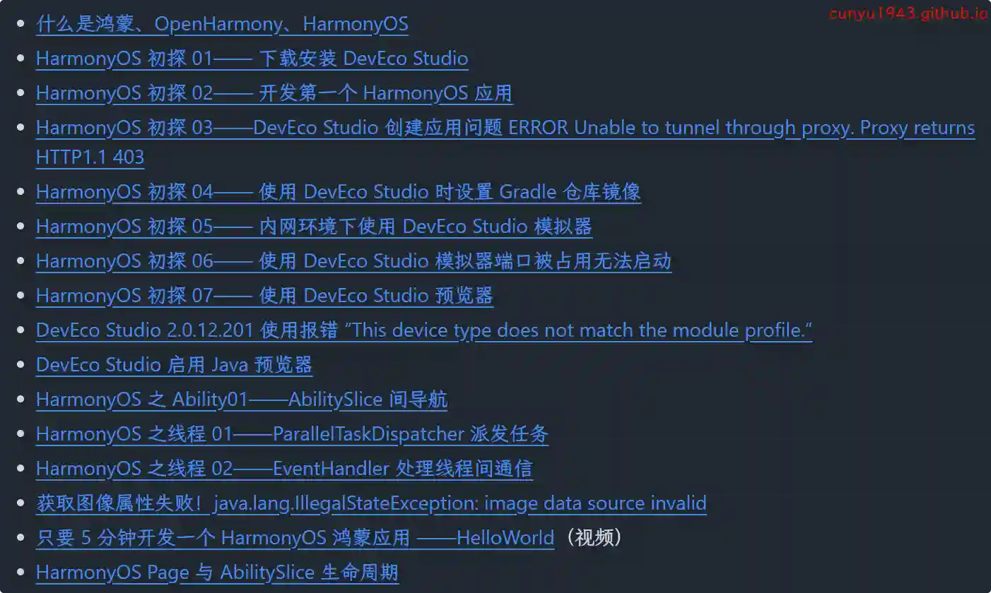 一本 HarmonyOS 应用开发的开源学习教程,主要介绍如何从 0 开始开发 HarmonyOS 应用。本书包括最新版本 HarmonyOS(HarmonyOS 6)中的新特性。图文并茂,并通过大量实例带你走进 HarmonyOS 的世界!