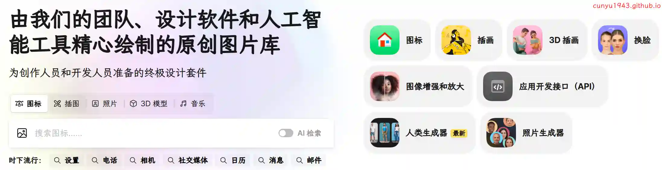 Icons8 团队、设计软件和人工智能工具精心绘制的原创图片库。提供免费的图标、剪贴画插图、照片和音乐,为创作人员和开发人员准备的终极设计套件。